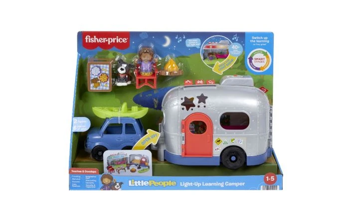 Je kindje trekt erop uit met deze leerrijke Little People caravan van Fisher-Price. Hang de camper aan de auto en vertrek, eenmaal ter plaatse open je de camper en kan het spelen beginnen! Met muziek en geluid.