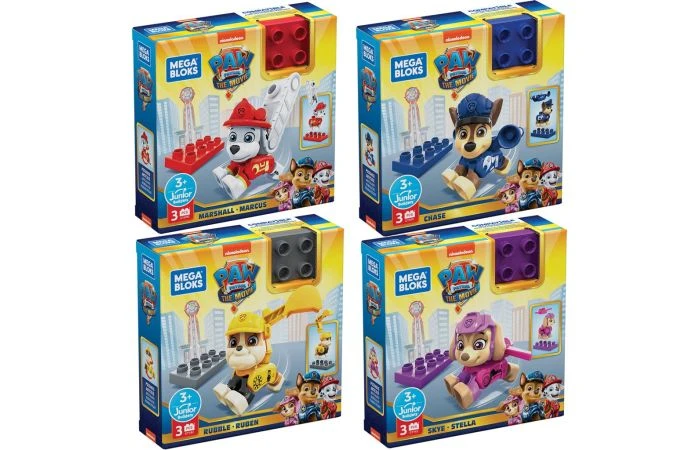Geen job is te groot en geen pup is te klein! Je kleintje kan zich voorbereiden op actie met zijn of haar favoriete personages uit PAW Patrol. Elke bouwset bevat 1 beweegbaar figuur, 1 mini bouwblok en 1 accessoire. Je kleine bouwer kan zijn of haar schattige PAW Patrol pup op het blok leggen, ze voorzien van het accessoire en op weg gaan om een reddingsactie uit te voeren. Kinderen kunnen alle 4 de pups verzamelen en hun accessoires combineren om een robot te bouwen. Kies uit Chase, Marshall, Rubble of Skye, geïnspireerd op PAW Patrol: De Film. Wordt geleverd in touchbox. Geschikt voor kinderen vanaf 3 jaar.