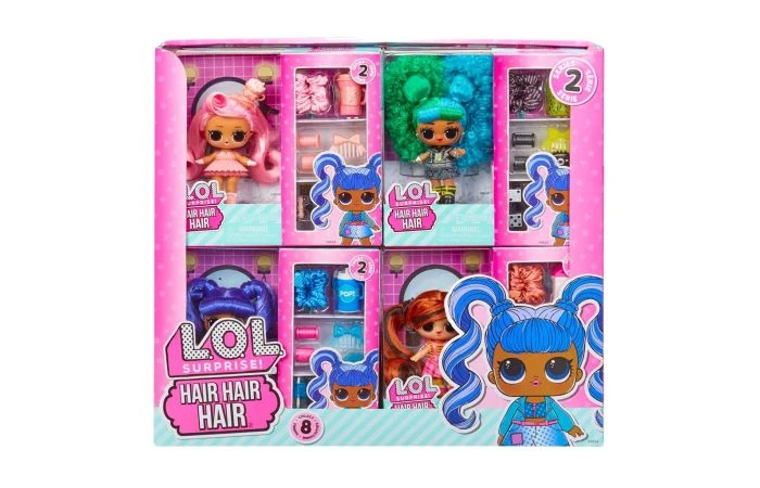 Ontdek de tweede serie van de L.O.L. Surprise Hair Hair Hair -poppen! Pak je LOL Surprise-verzamelpop met ECHT haar uit. Ze heeft 9 unieke stylingaccessoires, zoals een scrunchie, een haarborstel, haarclips, elastiek met bolletjes en een roller! Deze nieuwe B.B.’s hebben spectaculair haar om te borstelen, stylen en accessoires in te doen. Creëer schitterende en unieke kapsels die bij de coole mode van je pop passen. Stop je B.B. in bad om een verrassende kleurverandering te onthullen! Verzamel alle 8 Hair Hair Hair-poppen en speel met de hele crew! Pak 10 fantastische verrassingen uit om te mixen en matchen terwijl je met deze schattige personages speelt en hun haar stylet! De verrassingen zijn: LOL Surprise Hair Hair Hair-pop, outfit, schoenen, accessoire, flesje, haarborstel, haaraccessoire, scrunchi, elastiekje en haarroller. Wordt geleverd in windowbox en is geschikt voor kinderen vanaf 4 jaar.