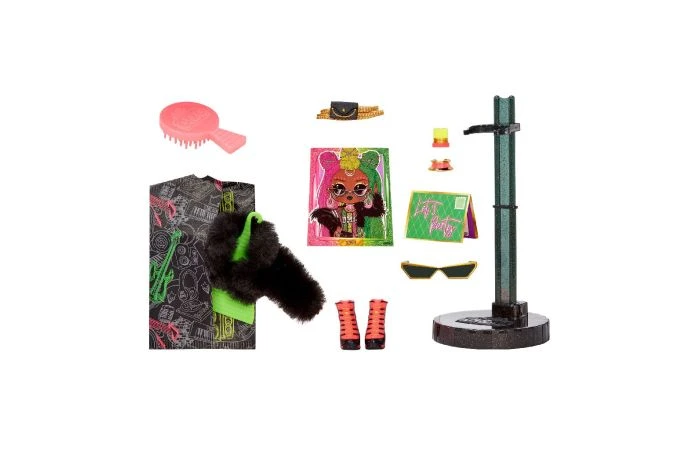 Pak 20 verrassingen uit met de LOL Surprise OMG Queens-modepop Sways inclusief majestueuze mode en accessoires met een koninklijk thema. Sways houdt van het ritme van de muziek. Deze koningin heeft beweegbare ledematen, zodat ze altijd klaarstaat om te dansen en graag op het ritme meebeweegt. Trek Sways haar coole mode aan met de elegante accessoires. Inhoud: 1 LOL Surprise OMG Queens-modepop, modeoutfit, modeaccessoires, oorbellen, schoenen, tasje voor aan een riem, ketting, armband, bril, uitnodiging, haarborstel, kledinghoes, kledinghanger en poppenstandaard. Verzamel alle 4 de LOL Surprise OMG Queens-modepoppen: Runway Diva, Miss Divine, Sways en Prism. Wordt geleverd in fraaie windowbox. Geschikt voor kinderen vanaf 3 jaar.