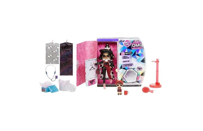 Pak 25 verrassingen uit, inclusief een LOL Surprise! OMG Winter Chill-modepop Camp Cutie en haar zusje Babe in the Woods Camp Cutie heeft een gedetailleerd gezichtje, prachtig haar en haar eigen knusse stijl. Ze is de grote zus van het favoriete LOL Surprise!-personage Babe in the Woods, dat ook is inbegrepen. De poppen bieden een compleet unieke uitpakervaring in een verpakking met Winter Chill-thema. Open de zijkant om je modepop uit te pakken en verrassingen te onthullen. Camp Cutie’s modieuze kleding wordt bewaard in kledingzakken, haar schoenen zitten in een schoenendoos en haar accessoires in haar hoedendoos. Haal het ijzige silhouet weg om haar afbeelding te onthullen. Zoek het lint en trek eraan om Camp Cutie om te draaien en haar biografie te lezen. Onthul dan Camp Cutie in haar kleedkamer. Zet haar in een fotogenieke pose op de poppenstandaard om met haar te pronken. De verpakking wordt een herbruikbare speelset met kleedkamer en relaxzone. Geschikt voor kinderen vanaf 4 jaar.
