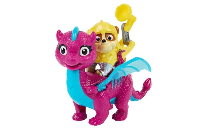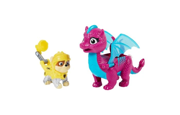 Ga mee met je favoriete pups en hun nieuwe drakenvriendjes, en beleef spannende reddingsmissies met de Rescue Knights Pup en Draak-sets. Deze set actiefiguren bevat Rubble en zijn trouwe drakenvriendje Blizzie. De geliefde pup van Paw Patrol draagt zijn Rescue Knights-harnas en is klaar om in actie te komen. Druk op de badgeknop van Rubble om het gereedschap in zijn rugzak te transformeren en open te klappen. Klem Rubble vervolgens op de rug van Blizzie en druk op de knop op de staart om de glinsterende, doorzichtige vleugels te laten bewegen. Deze geweldige set brengt al het middeleeuwse plezier van de populaire tv-serie tot leven. Verzamel alle Rescue Knights Pup en Draak-sets en gebruik je fantasie om keer op keer je eigen reddingsmissies te verzinnen. Inhoud: 1 Paw Patrol-figuur, 1 draakfiguur. Wordt geleverd in touchbox. Geschikt voor kinderen vanaf 3 jaar.