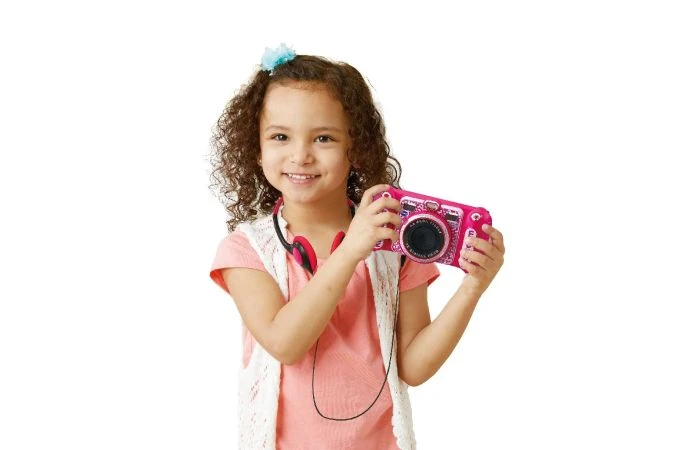 Maak foto’s én selfies en bewerk deze, voeg spraakmemo’s toe, speel spelletjes, maak video’s en luister naar je favoriete muziek! De camera is aan te sluiten op de computer en uitbreiding d.m.v. een microSD-kaart is mogelijk (niet inbegrepen). Inclusief koptelefoon en polsbandje. Wordt geleverd inclusief 4 AA-batterijen in een windowbox. Is gemaakt van plastic en is geschikt voor kinderen vanf 4 jaar.